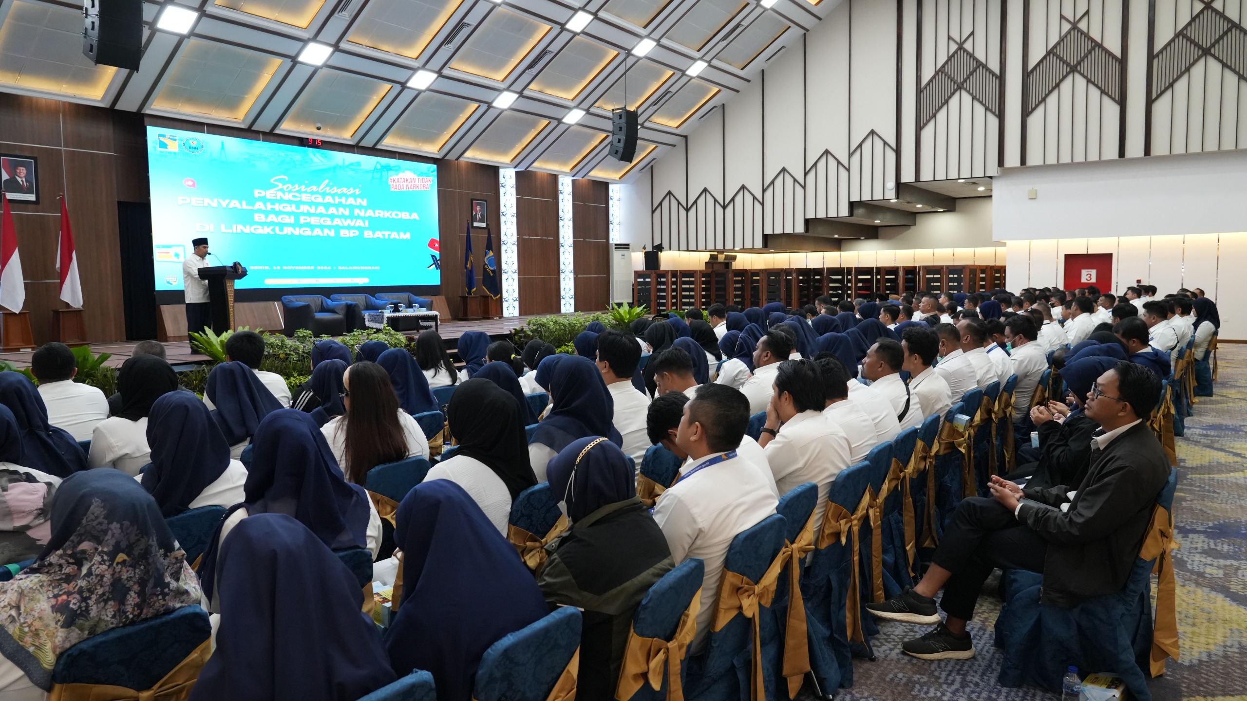 mandhala.info,BATAM | Badan Pengusahaan Batam (BP Batam) bersama Badan Narkotika Nasional (BNN) Provinsi Kepri Gelar Sosialisasi Pencegahan Penyalahgunaan Narkoba bagi Pegawai di lingkungan BP Batam pada Senin (18/11/2024) di Balairungsari.