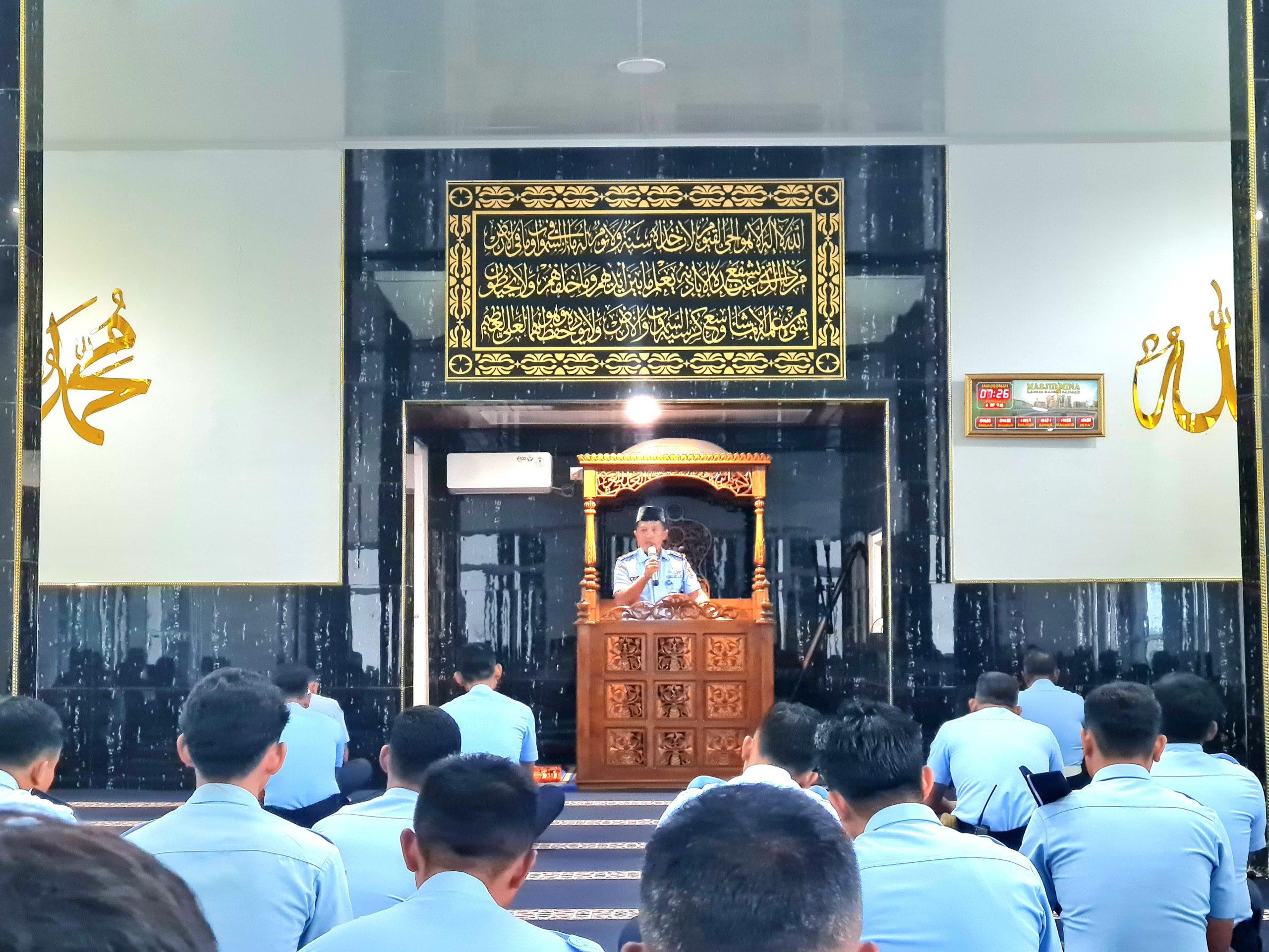 Dipimpin oleh Kepala Pembinaan Mental dan Ideologi (Kabintalid) Lanud RSA, Mayor Sus H.M. Agus Salim, S.Ag, kegiatan diawali dengan Sholat Dhuha, dilanjutkan dengan ceramah singkat yang mengingatkan pentingnya bersyukur atas nikmat yang diberikan Allah SWT. “Apapun harta, kedudukan, dan rezeki yang kita miliki adalah pemberian dari Allah. Oleh karena itu, mari kita perbanyak ibadah dan rasa syukur untuk keberkahan hidup,” ucapnya.