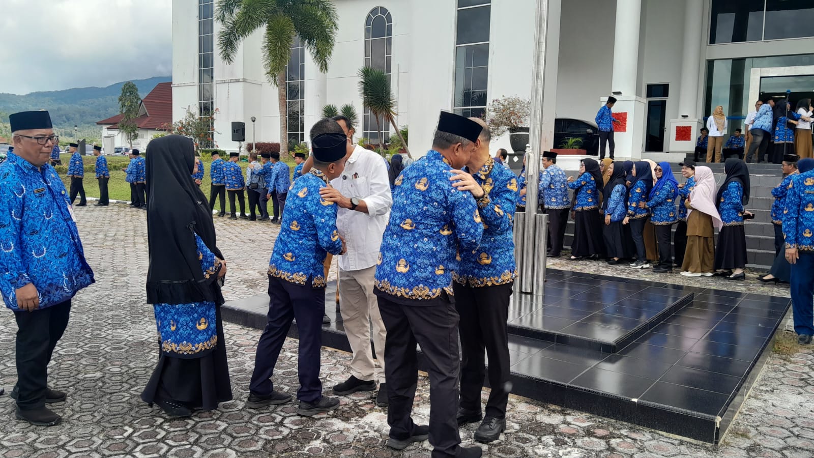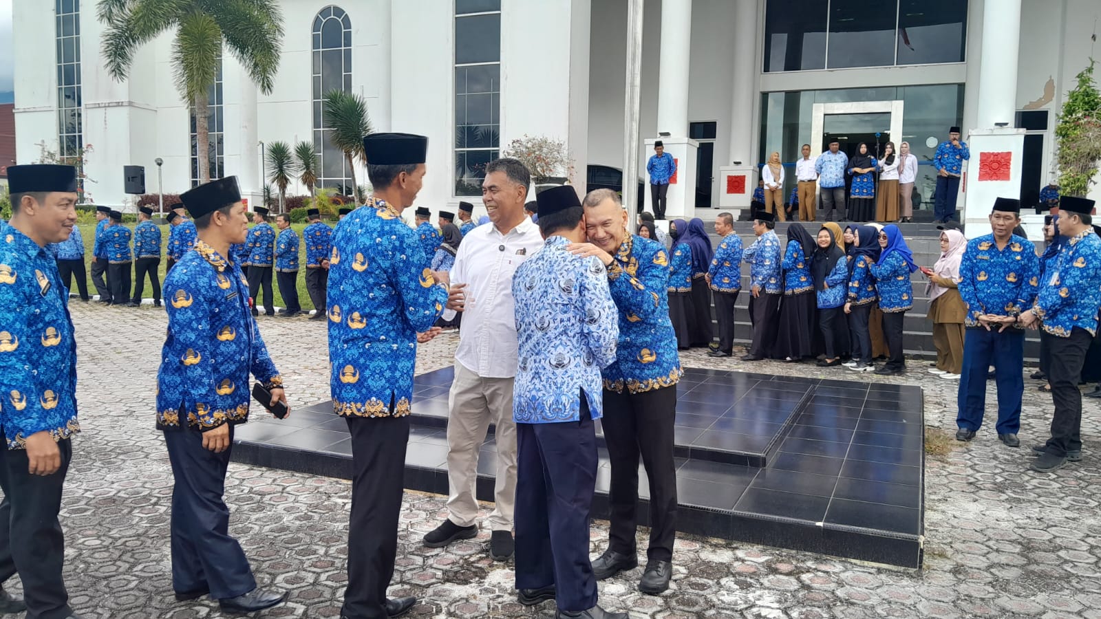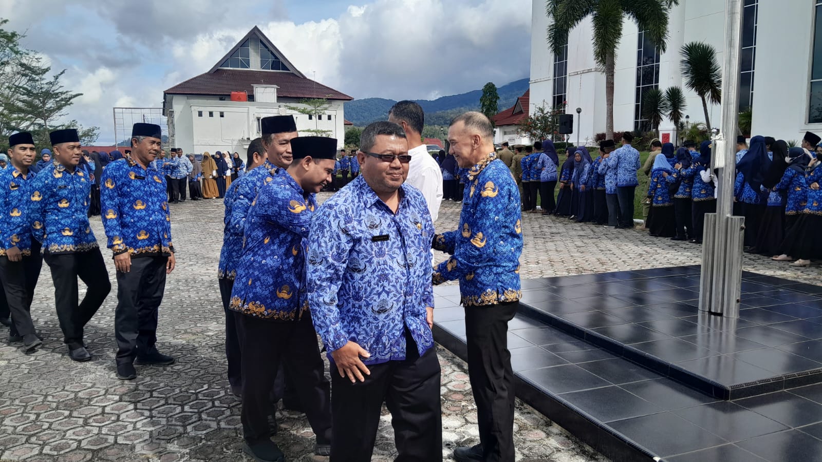 Apel pagi ini dihadiri oleh para pejabat di lingkungan Pemkab Natuna serta para ASN yang turut memberikan penghormatan kepada kepemimpinan Wan Siswandi dan Rodhial Huda selama menjabat.