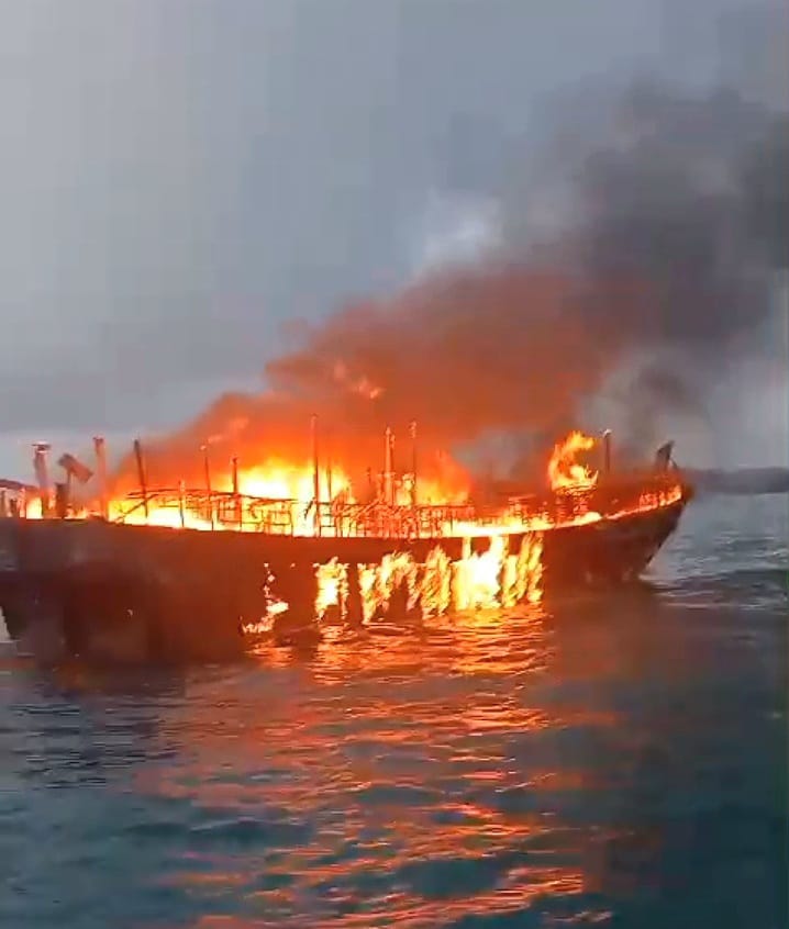 NATUNA, KEPRI | mandhala.info – Sebuah kapal pengangkut minyak untuk PLN milik Hen air nusa Serasan, KM Lyra, terbakar di perairan Subi pada Selasa (18/3) subuh tadi. Kapal yang berlayar dari Pelabuhan Selat Lampa menuju Kecamatan Subi itu mengalami insiden tidak jauh dari pelabuhan tujuan.