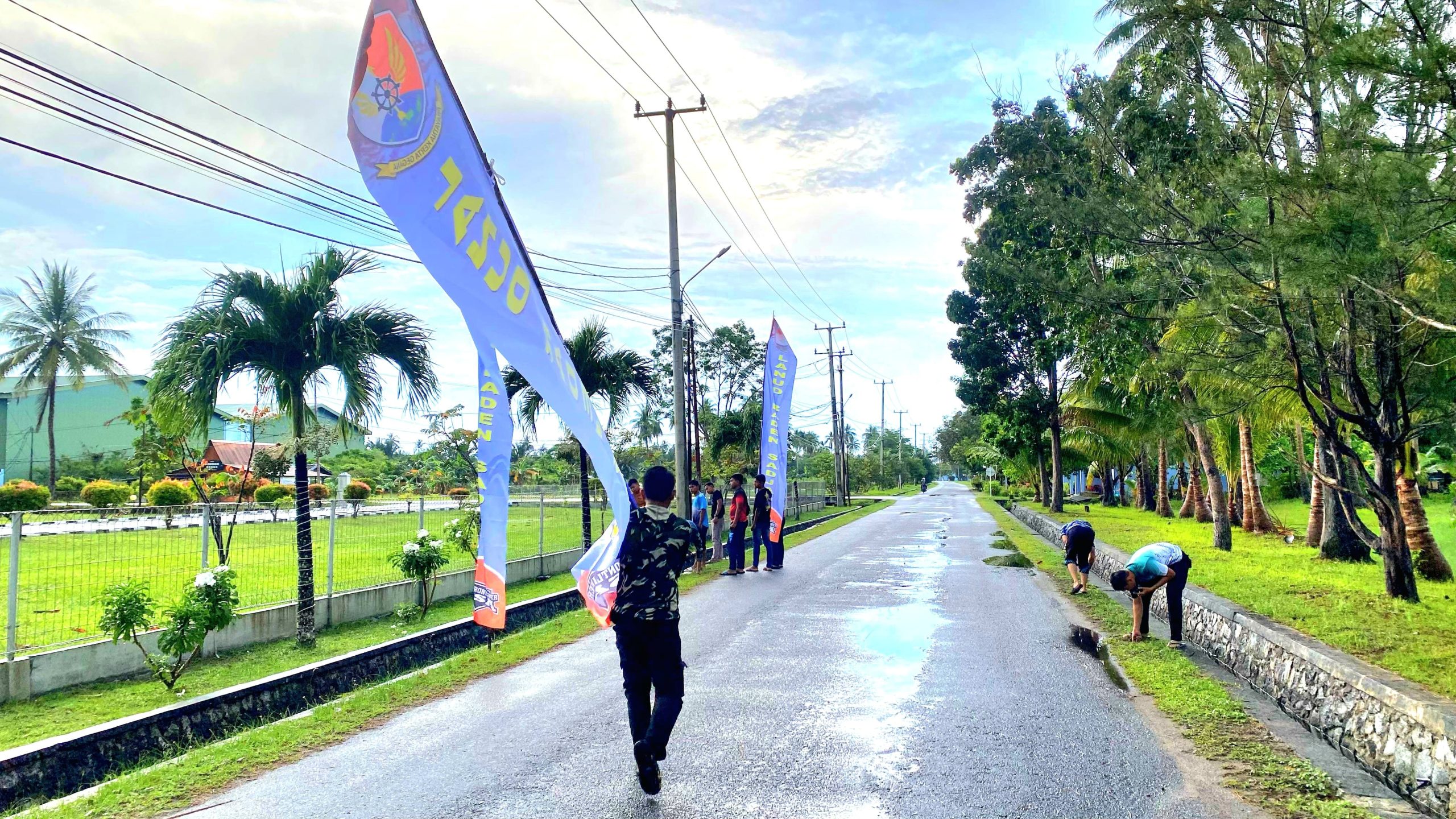 Lanud RSA Natuna Meriahkan HUT ke-79 TNI AU dengan Pemasangan Umbul-Umbul