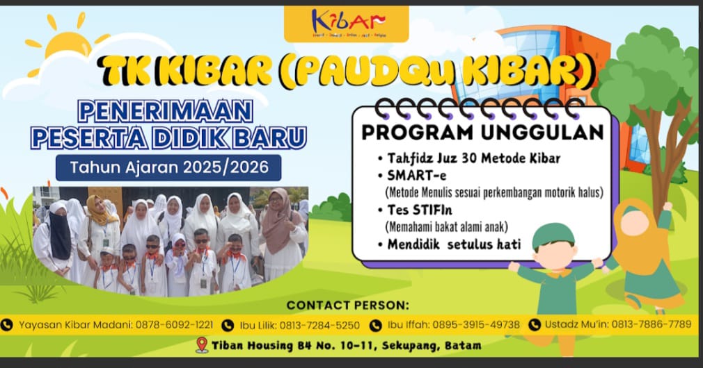 Seperti tahun-tahun sebelumnya, setiap tahun ajaran baru menjadi momen penerimaan peserta didik baru di berbagai sekolah. Hal ini juga berlaku di Pendidikan Anak Usia Dini Al-Qur’an (PaudQu) Kibar, yang telah resmi membuka pendaftaran untuk tahun ajaran 2025/2026.