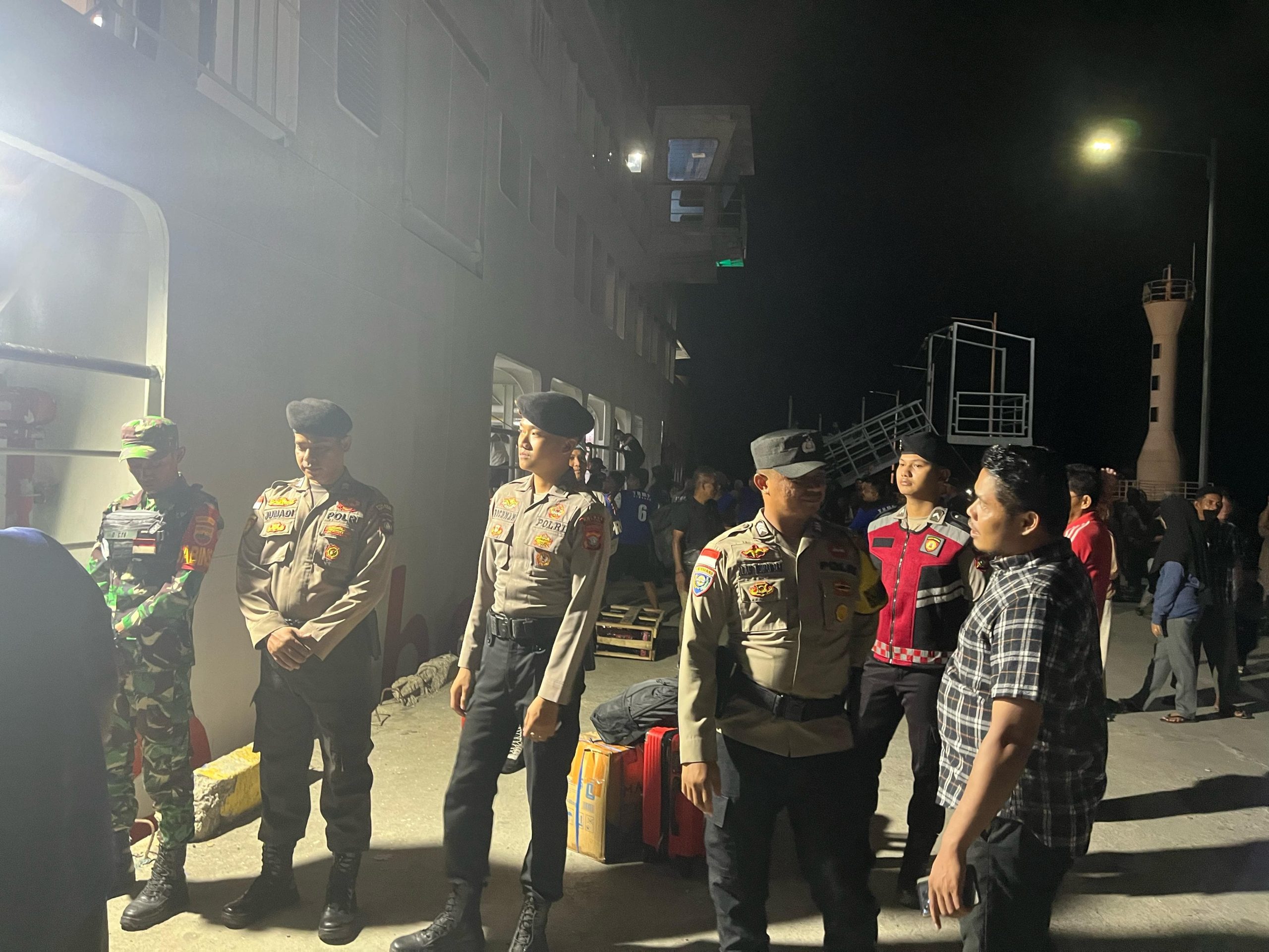 Kehadiran para petugas tidak hanya menjamin keamanan, tetapi juga memberikan rasa nyaman bagi para penumpang yang turun dari kapal. Proses turun-naik penumpang diawasi dengan baik dan berlangsung dalam suasana yang tertib dan kondusif.