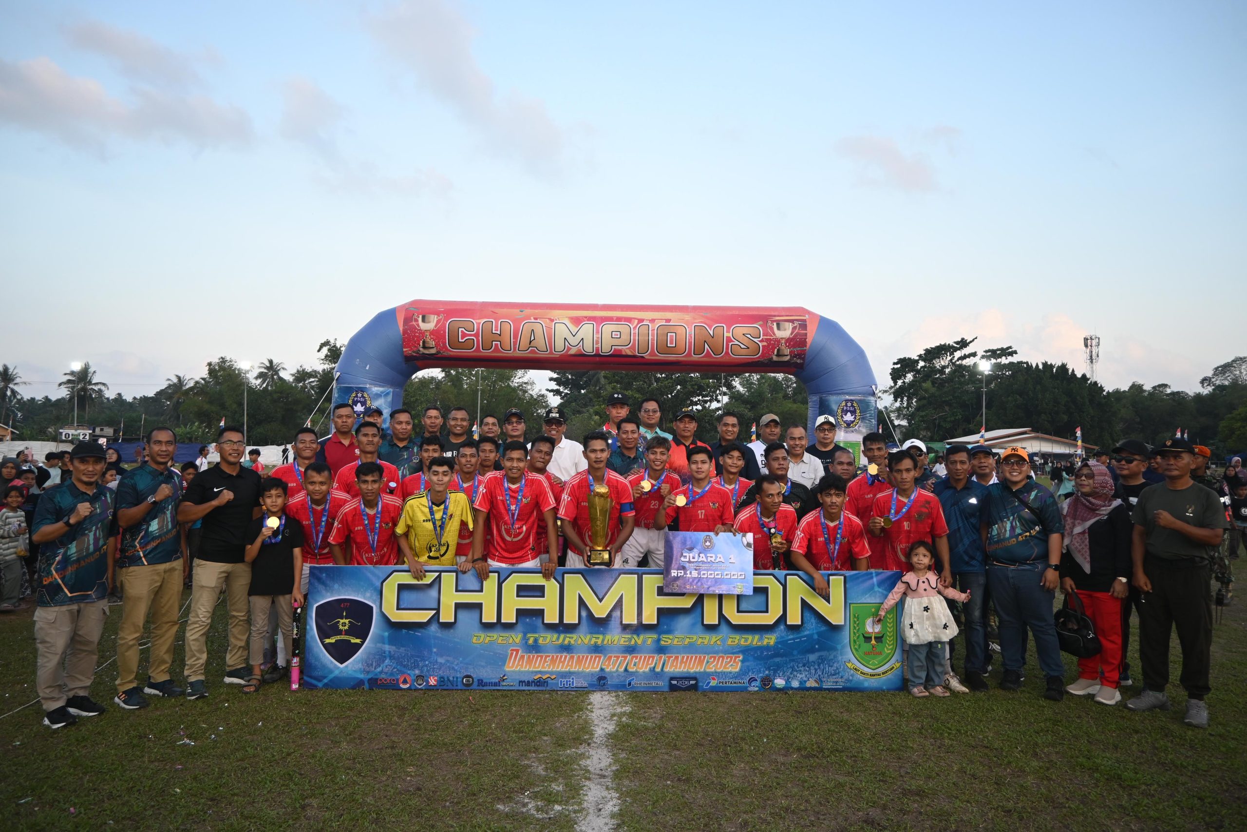 Natuna|mandhala.info – Wakil Bupati Natuna, Jarmin Sidik dan Komandan Lanud Raden Sadjad, Kolonel Pnb I Ketut Adiyasa Ambara menyerahkan Piala pada final Open Tournament Dandenhanud 477 Cup I Tahun 2025, Minggu (20/7/2025).