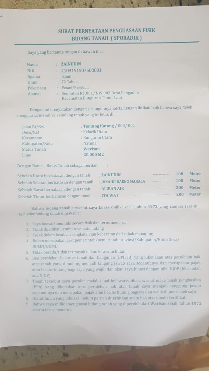 Natuna|mandhala.info– Seorang warga Desa Pengadah, Kecamatan Bunguran Timur, Kabupaten Natuna, atas nama Ita Wat, dilaporkan kehilangan surat penting yang sebelumnya dititipkan kepada saudara kandungnya. Kejadian kehilangan tersebut diperkirakan terjadi sekitar bulan Maret 2025, di rumah milik Zainudin, yang juga merupakan abang kandung Ita Wat, beralamat di Jalan Semitan RT 001 RW 002, Desa Pengadah.