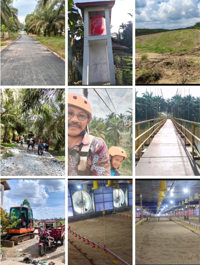 Hasilnya, pembangunan berjalan tepat sasaran. Dengan dukungan APBD Kabupaten Tanjab Barat Tahun Anggaran 2025, telah dibangun jalan aspal sepanjang 1.300 meter. Dari Dana Desa, pembangunan menyentuh kebutuhan dasar masyarakat, seperti :