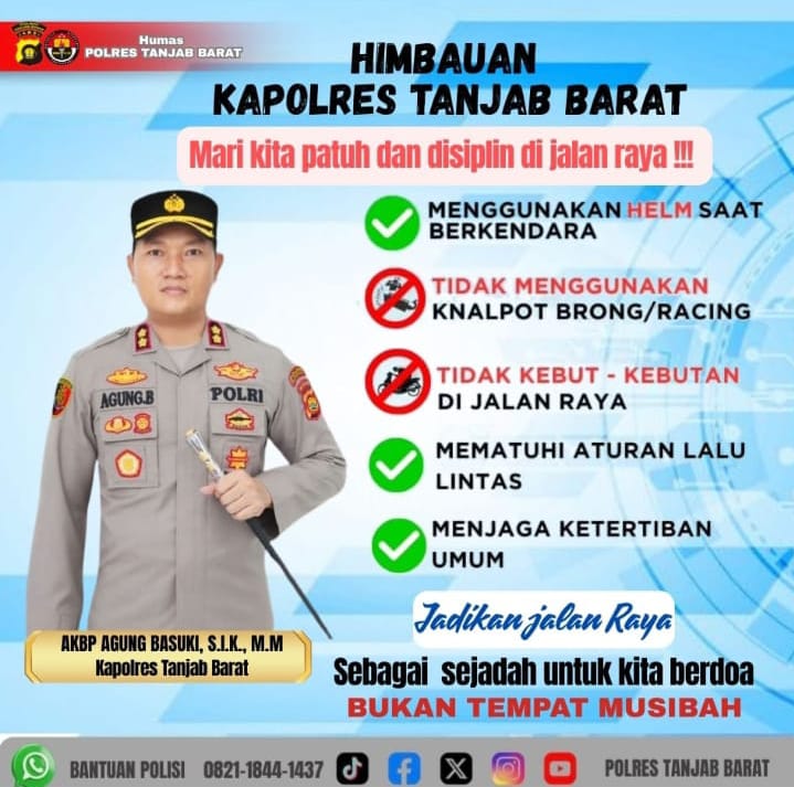 Untuk memperkuat pelayanan, Polres Tanjab Barat membuka layanan pengaduan cepat di nomor WhatsApp 0821-1844-1437 bagi masyarakat yang membutuhkan bantuan di jalan raya maupun lingkungan tempat tinggal.
