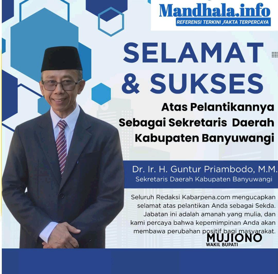 Ucapan selamat dan sukses pun mengalir dari Media Mandhala Info atas amanah baru yang diemban oleh Dr. Guntur Priambodo. Dikenal sebagai sosok birokrat berpengalaman, beliau diharapkan mampu membawa semangat baru dalam memperkuat tata kelola pemerintahan dan mempercepat akselerasi pembangunan di Banyuwangi.