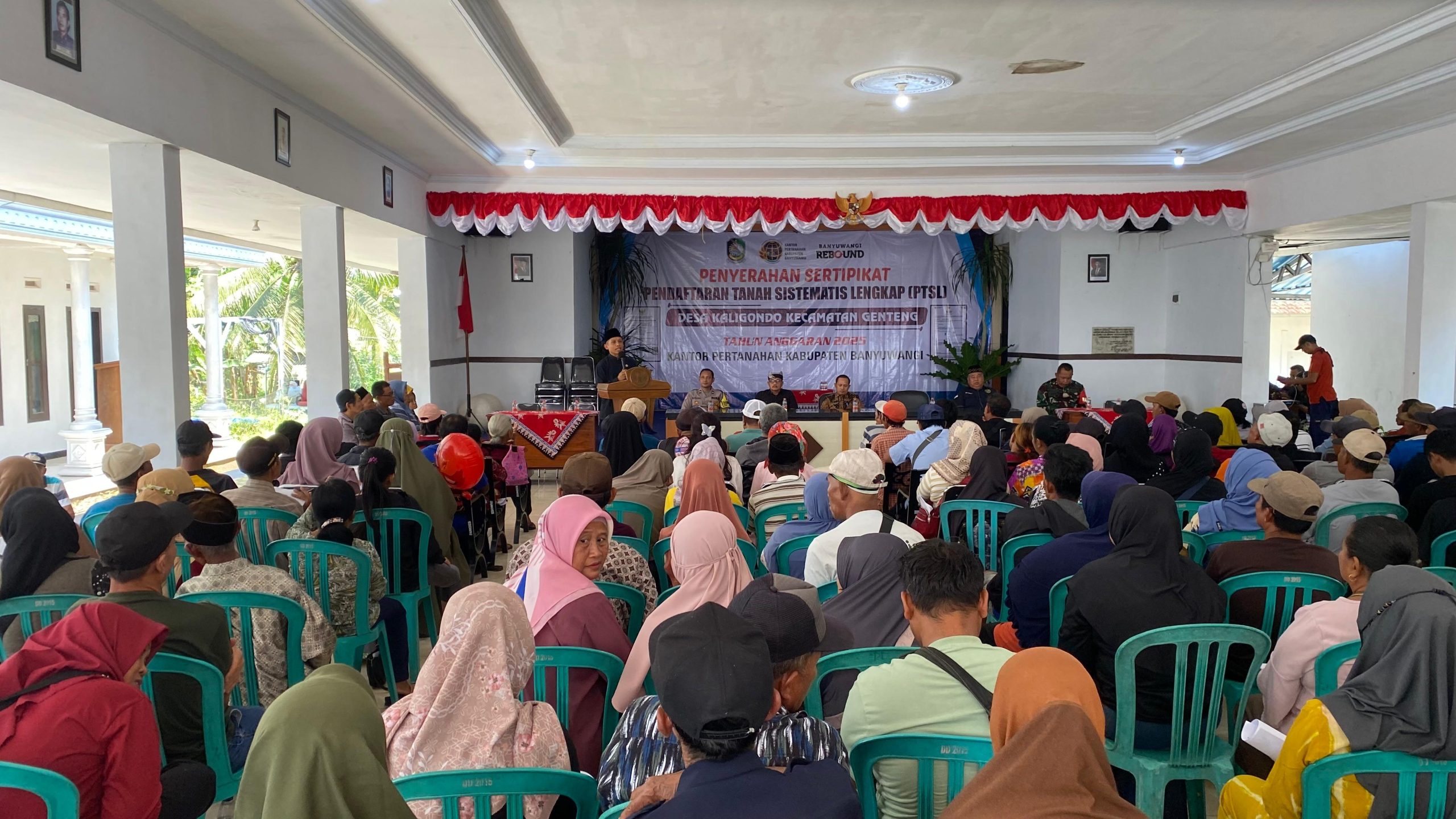 BANYUWANGI |mandhala.info– Kantor Pertanahan Kabupaten Banyuwangi menyerahkan sertifikat tanah hasil program Pendaftaran Tanah Sistematis Lengkap (PTSL) kepada warga Desa Kaligondo, Kecamatan Genteng.