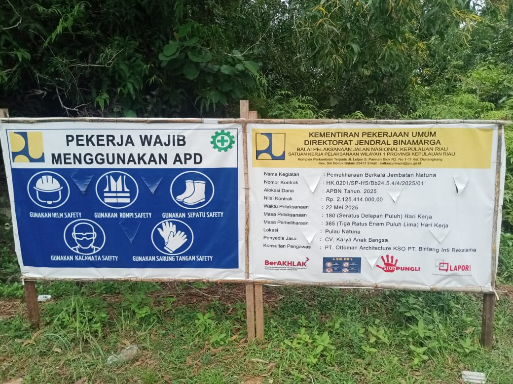 Kegiatan tersebut dilaksanakan oleh Balai Pelaksanaan Jalan Nasional Kepulauan Riau, melalui Satker Pelaksanaan Wilayah I Provinsi Kepri, di bawah Kementerian PUPR – Direktorat Jenderal Bina Marga.