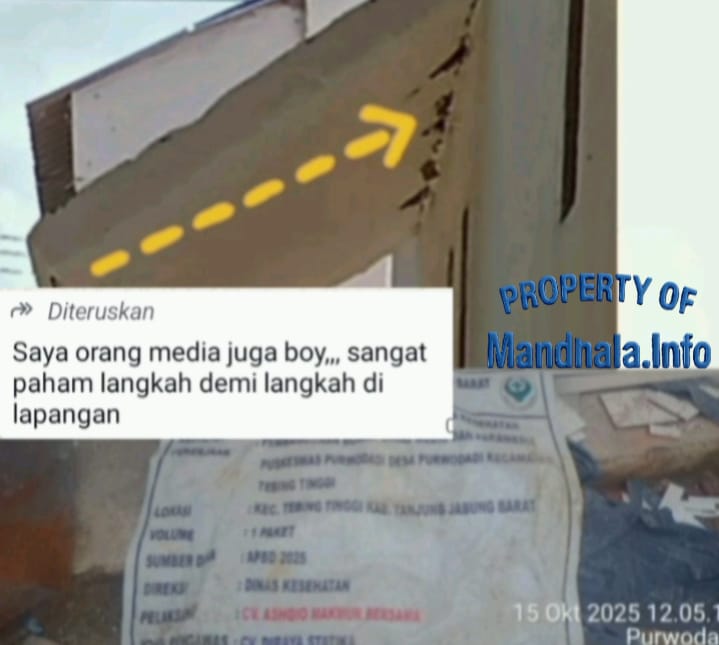 TANJAB BARAT | Mandhala.Info – Proyek pembangunan rumah dinas tenaga kesehatan di Desa Purwodadi, Kecamatan Tebing Tinggi, Kabupaten Tanjung Jabung Barat, kembali menuai sorotan tajam. Bangunan yang baru selesai dikerjakan itu sudah menunjukkan tanda-tanda kerusakan serius, mulai dari kanopi patah, plafon renggang, hingga dinding yang mulai retak.