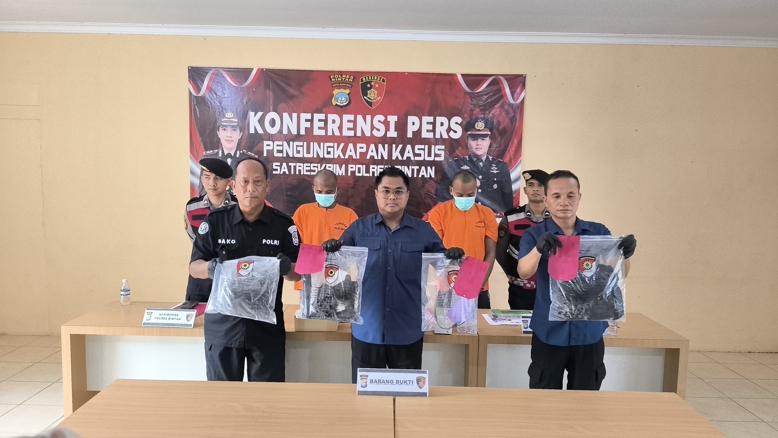 Bintan|mandhala.info – Polres Bintan berhasil mengungkap kasus pembunuhan berencana terhadap seorang nelayan, AM (31), yang tewas dengan 17 luka tusukan, Dua dari tiga pelaku, inisial SC (26) dan LS (23), telah diamankan, sementara satu pelaku lain, inisial Y (22), masih dalam daftar pencarian orang (DPO) pada konferensi pers pada Rabu (13/11/2025).