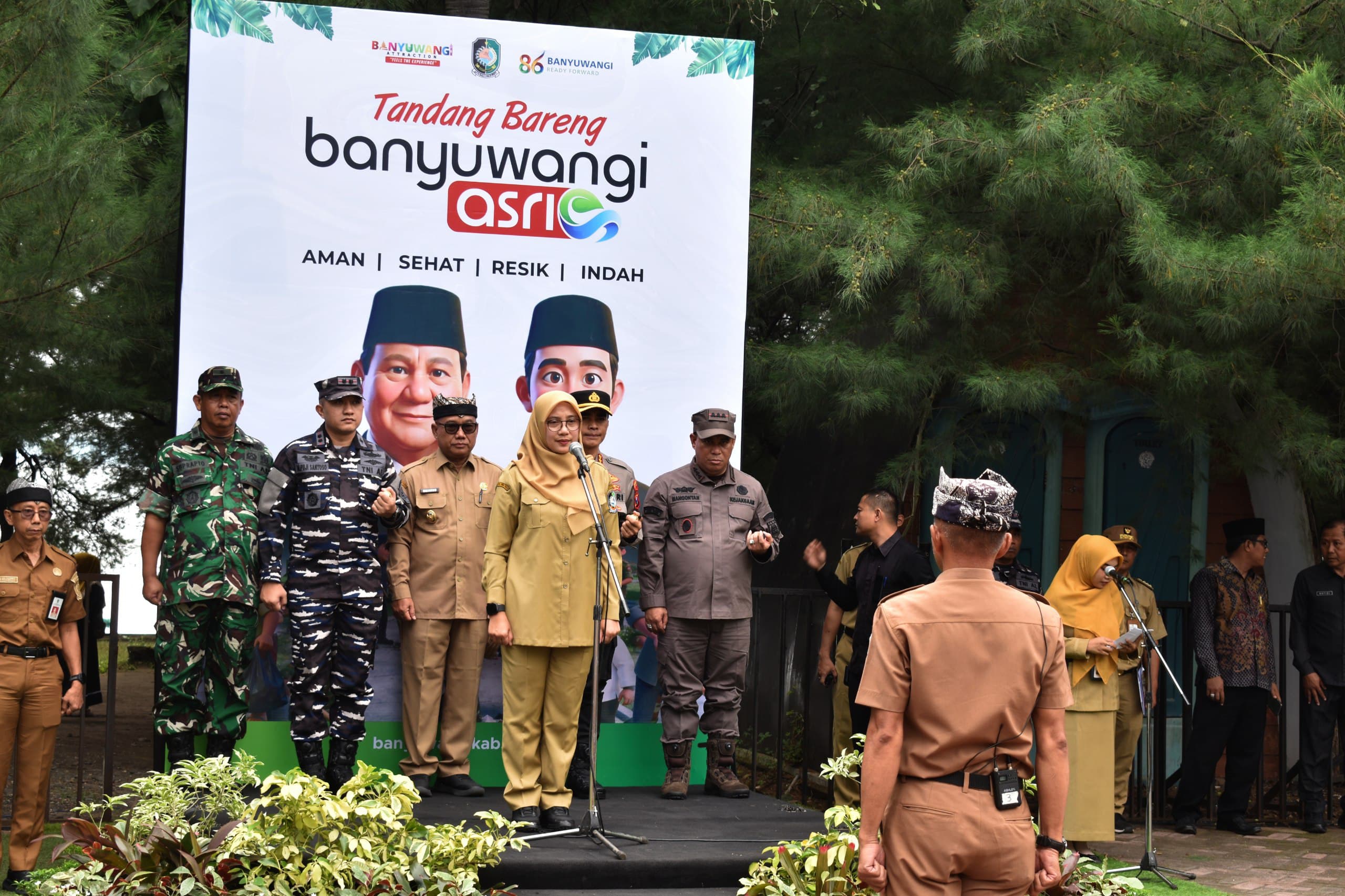 BANYUWANGI | mandhala.info– Kepala Staf Kodim (Kasdim) 0825/Banyuwangi, Mayor Kav Suprapto, mewakili Komandan Kodim 0825, menghadiri peluncuran Gerakan Banyuwangi ASRI (Aman, Sehat, Resik, dan Indah) yang dipusatkan di Wisata Grand Watu Dodol, Rabu (18/02/2026). Kehadiran Kasdim dalam agenda yang dipimpin langsung oleh Bupati Banyuwangi, Ipuk Fiestiandani, merupakan bentuk komitmen nyata TNI dalam mendukung akselerasi program Presiden RI untuk menciptakan lingkungan yang berkualitas. Mayor Kav Suprapto menegaskan bahwa keterlibatan jajaran Kodim 0825 bukan sekadar pendampingan seremonial, melainkan bagian dari fungsi pembinaan teritorial guna memastikan keamanan dan kenyamanan wilayah tetap terjaga melalui integrasi sistem Smart Kampung serta respons cepat keamanan yang menjadi pilar utama gerakan ini.
