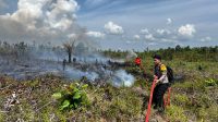 Respon Cepat Bhabinkamtibmas Polres Natuna Bersama BPBD Natuna Padamkan Kebakaran Lahan di Batubi-Kelarik
