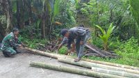 Babinsa Koramil 1617-02/Mendoyo Bersama Warga Bangun Jembatan Bambu