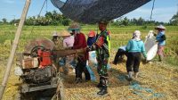 Bantu Panen Padi Warga” Babinsa Sampaikan Akan Selalu Dampingi Program Ketahanan Pangan